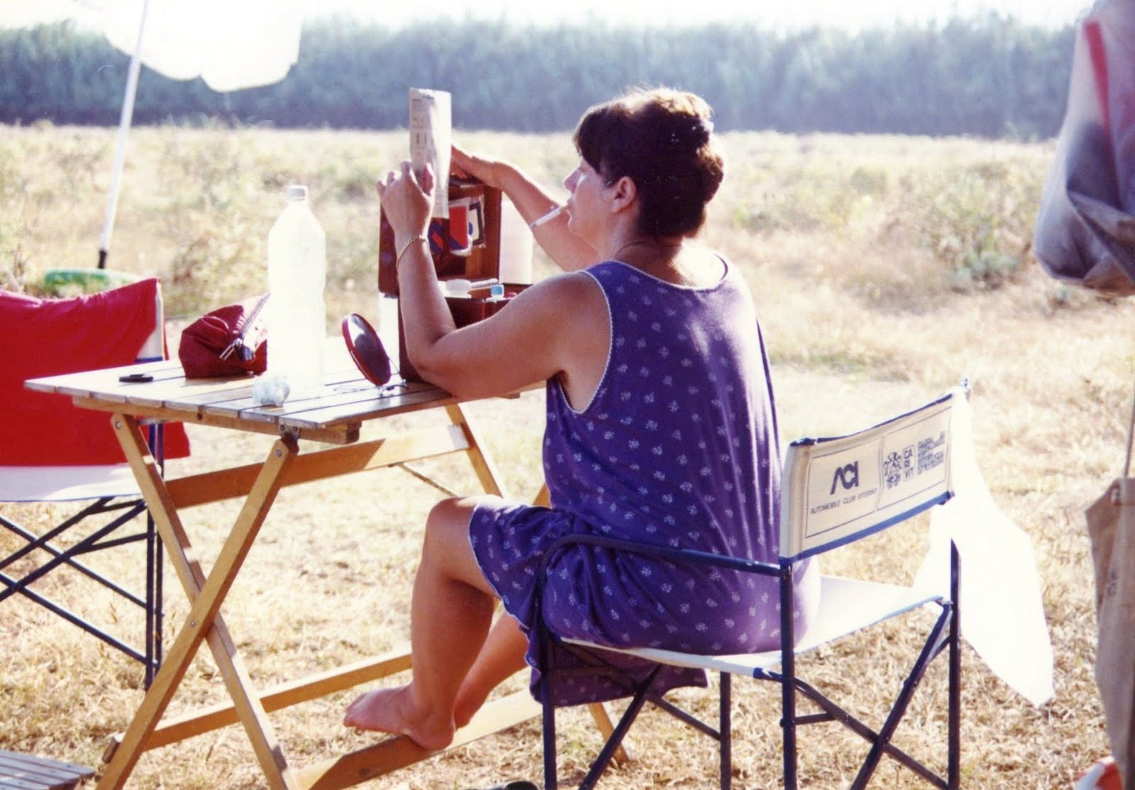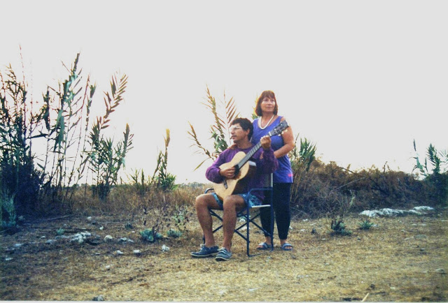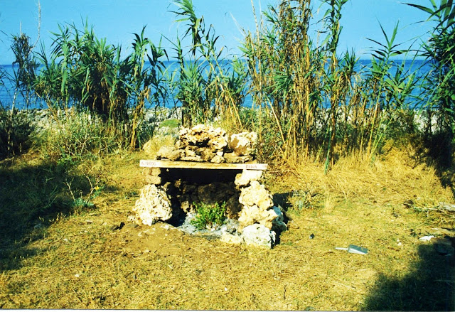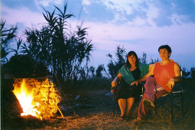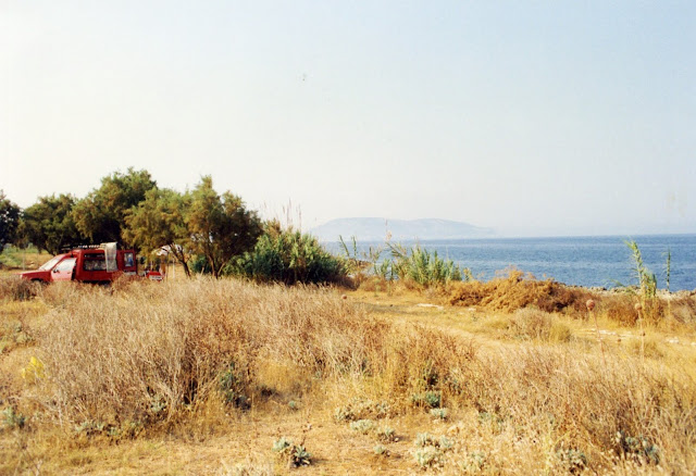 | Il nostro accampamento nei pressi del recinto della casa marina dei Papastatopoulos. Mina prepara la colazione. |