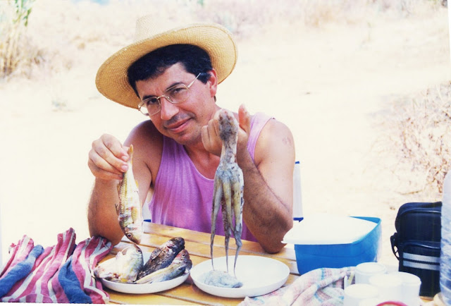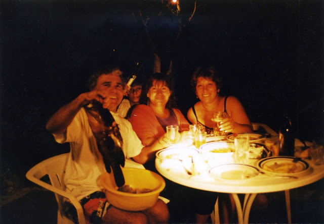 | Si cena sopo la pesca: Georghios, Alfredo e Aghela. |