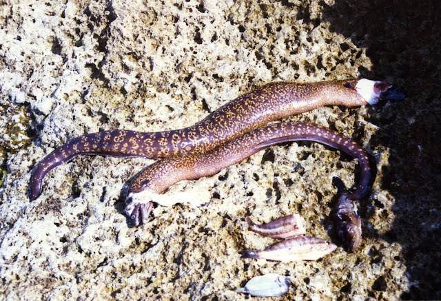 | La cernia pescata da Georghios. Seguono Mina e Aghela. |