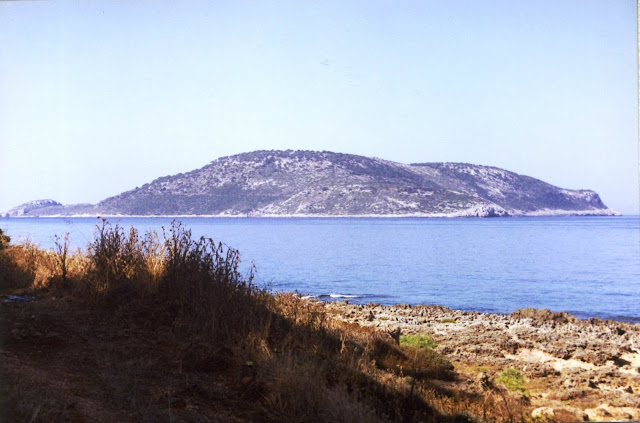 | Il mare davanti alla casa marina e l'isoletta di Proti. |