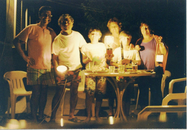 | Foto di gruppo dopo la pesca notturna di Georghios. Da sinistra, Alfredo, Georghios, due nipotini, Aghela e Mina. |