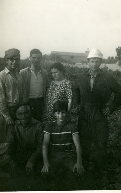 1966. Civita Castellana, Tenuta Valentina De Nicola. A sinistra, Lorenzo Stefanizzi di Collemeto, militare a Roma, in "visita parenti". Sefuono i miei fratelli Eugenio e Aldo, quindi io, Alfredo.