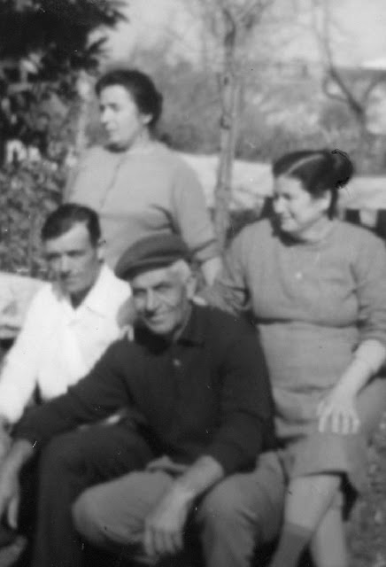 1966. Civita Castellana, Tenuta Valentina De Nicola in via Terrano n. 10. In piedi: Valentina De Nicola. Seduti: Pasqualino Mariano, Giovanni Romano (mio padre) e Lucia Giustizieri (mia madre).