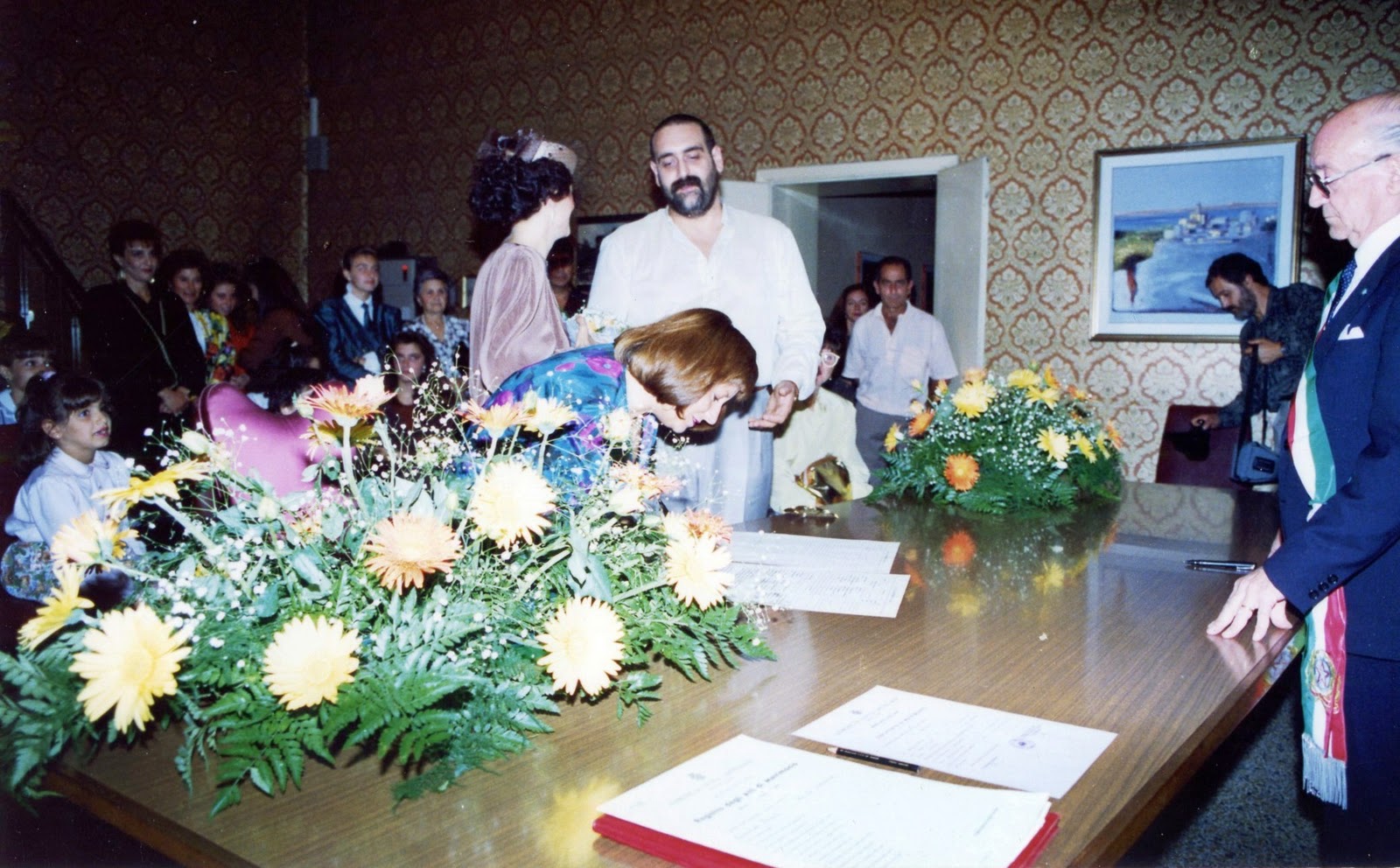 La testimone di nozze Giacomina Fabiani, detta Mina, appone la sua firma nel Municipio di Civita Castellana. In piedi gli sposi Maria e Cesare. Ufficiale del Comune il vice sindaco Luigi Lemme. |