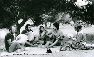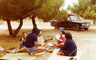 Con Mina Fabiani, la mia compagna, Franco Coletta e la sua ragaza Rita di Civita Castellana, qualche giorno prima di imbarcarci per la Grecia dal porto di Otranto, il caso volle che, in visita al museo di Maglie, c'imbattessimo in Franco Carri e la sua ragazza Fulvia, due carissimi amici di Milano, lì nel Salento a trascorrere le vacanze. Franco Carri era stato un carissimo commilitone quando prestavo servizio militare a Trento nel 1975. Un amico di tante avventure, col quale avevo condiviso una visione del mondo senza sfruttati e sfruttatori. Più volte ero stato ospite nella sua casa di Milano. L'inatteso incontro ci permise di trascorrere insieme una giornata. Così ci dirigemmo verso Otranto e da qui, proseguendo verso Santa Cesarea Terme, ci fermammo in una pineta sulla costa dove, all'ombra dei pini, demmo vita con chitarra e tamburello a un improvvisato concerto di musica popolare salentina e non solo.