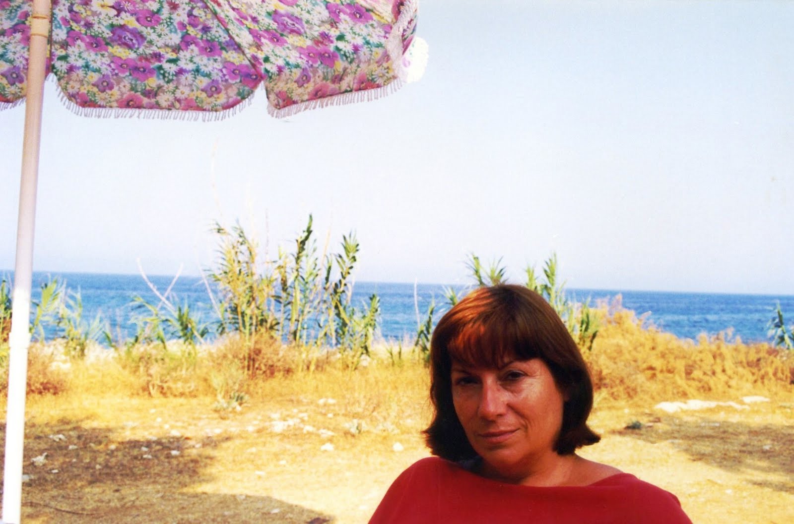 | Mina Fabiani sugli scogli davanti alla casa marina. |