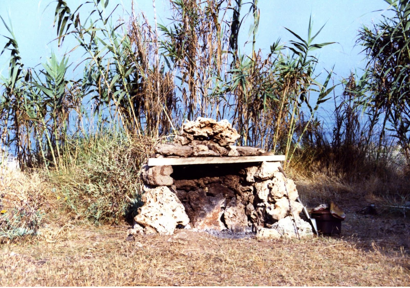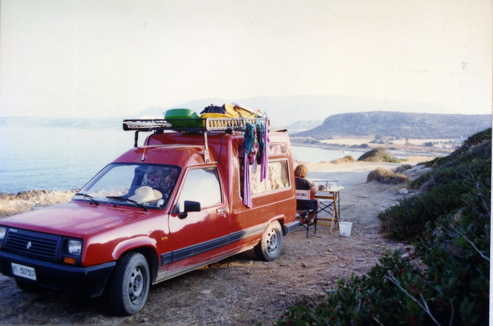 | Il nostro accampamento nei pressi del recinto della casa marina dei Papastatopoulos. Mina prepara la colazione. |