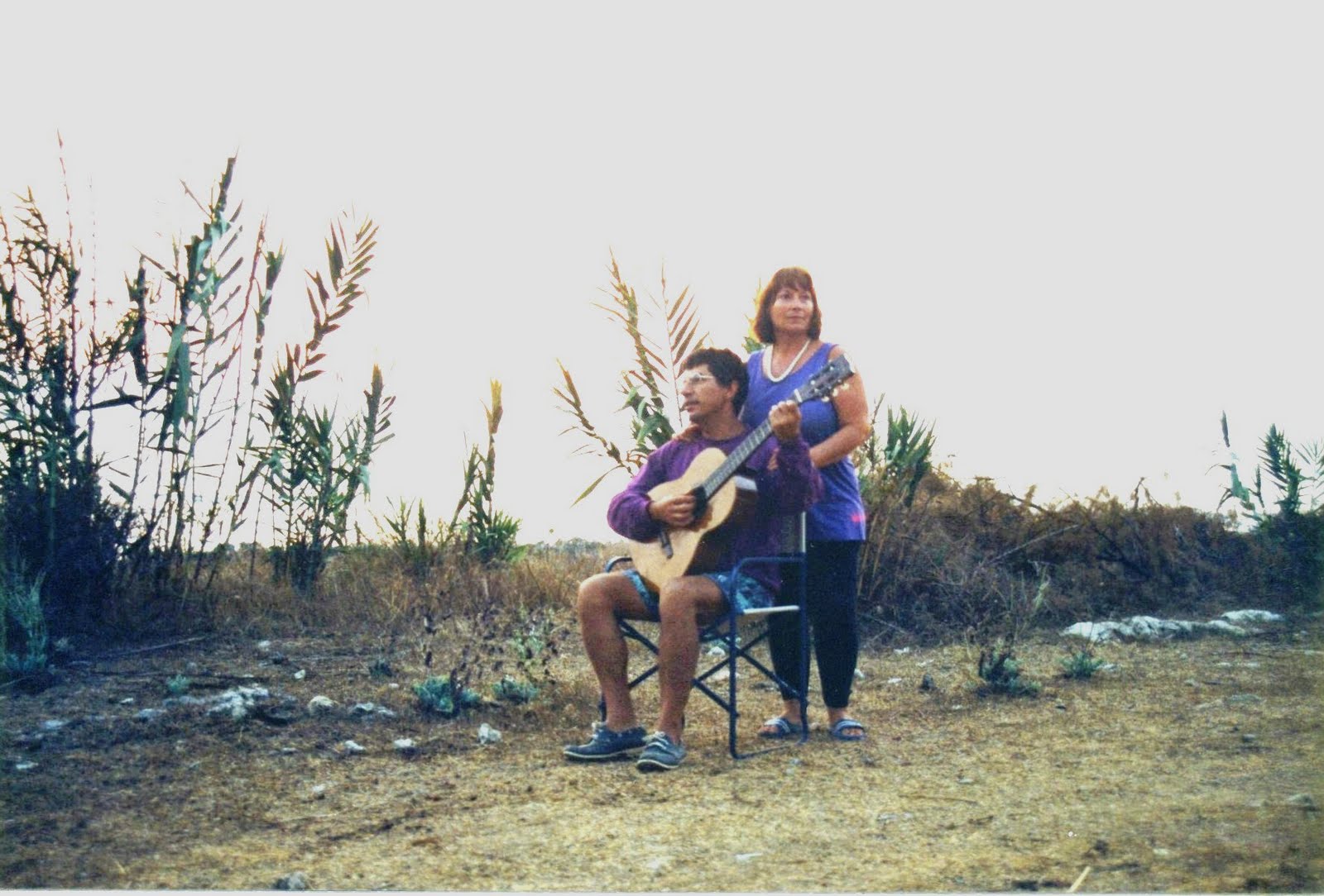 | Alfredo e Mina e il fuoco serale davanti al mare. |